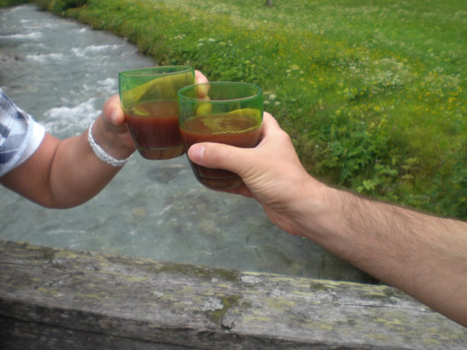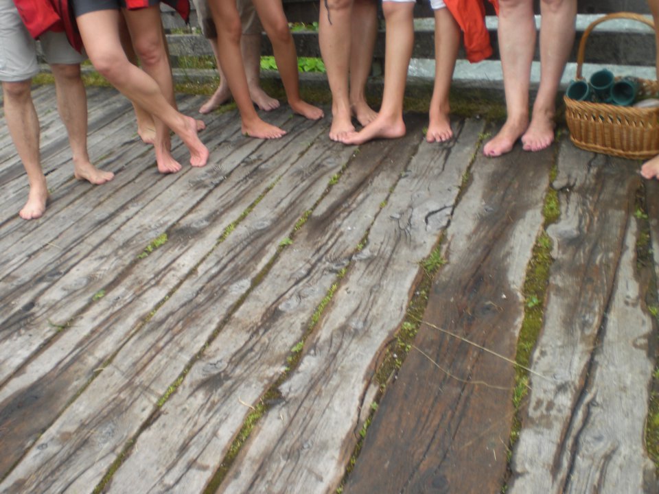 Kurz bevor wir zu unserer heutigen Barfusswanderung aufbrachen... schüttete es wie aus Kübeln... um so erstaunlicher war es, dass wir dann ganz trocken unseren Barfusscocktail auf der Böndlbrücke geniessen konnten.