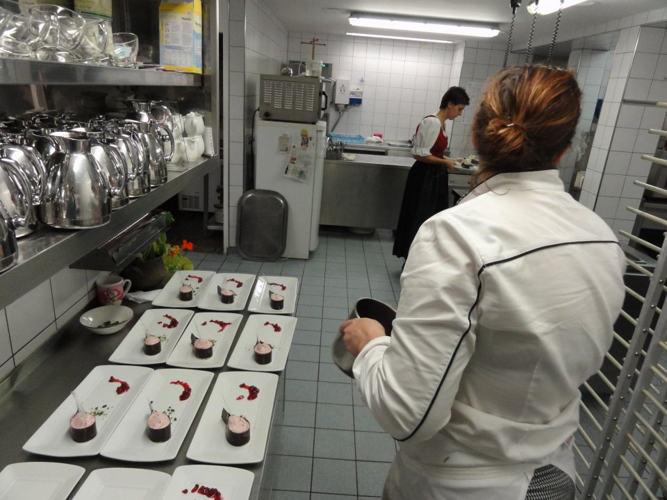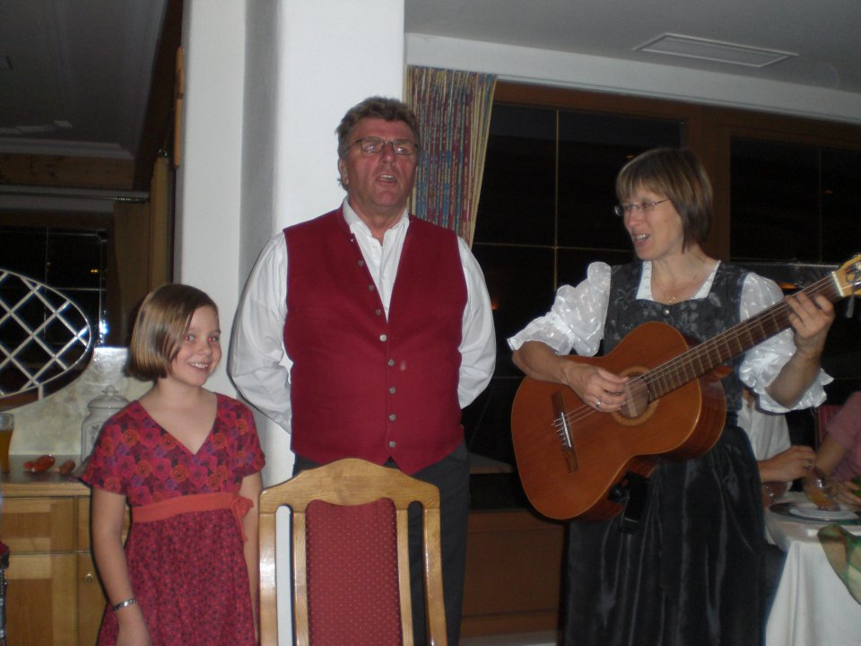 Heute ist bei uns Inventur, also habe ich noch ein wenig Arbeit vor mir... (und beim Galadiner hör ich gerade Papa beim Singen und spielen mit Paulina.... es fehlt noch die Beiriedschnitte mit Kräuterkruste und meine Dessertvariation, aber ich habe mich ganz kurz vor den Computer gesetzt und schreibe ein wenig am Blog herum....und muss noch einmal kurz weg...und bin schon wieder da....) Die bärigen Fotos hat übrigens der Simon geschossen....Iris und Silvia gönnen sich gerade ein Häppchen vom Dessert. Martin ist fleissig beim Küche putzen und ich bereite mich gerade auf die Inventur vor.... Letzte Woche hat uns ja unser Austauschspion verlassen und auf dem Hintertuxer Oktoberfest hat er gleich seine neugewonnene Freiheit gefeiert, obwohl er schon seit Montag wieder in der Schule sitzt und schwitzt?!? Kathi hat gestern ihre Lehrabschlussprüfung erfolgreich abgelegt und hat heute schon ein wenig Rezeptionsluft geschnuppert, weil sie jetzt die Seiten wechselt.... Ansonsten ist alles wie gehabt... und Iris und Papa wandern jeden Tag irgendwo hin (allerdings nicht mehr auf alle Gipfel, da sie ja etwas angezuckert sind....)