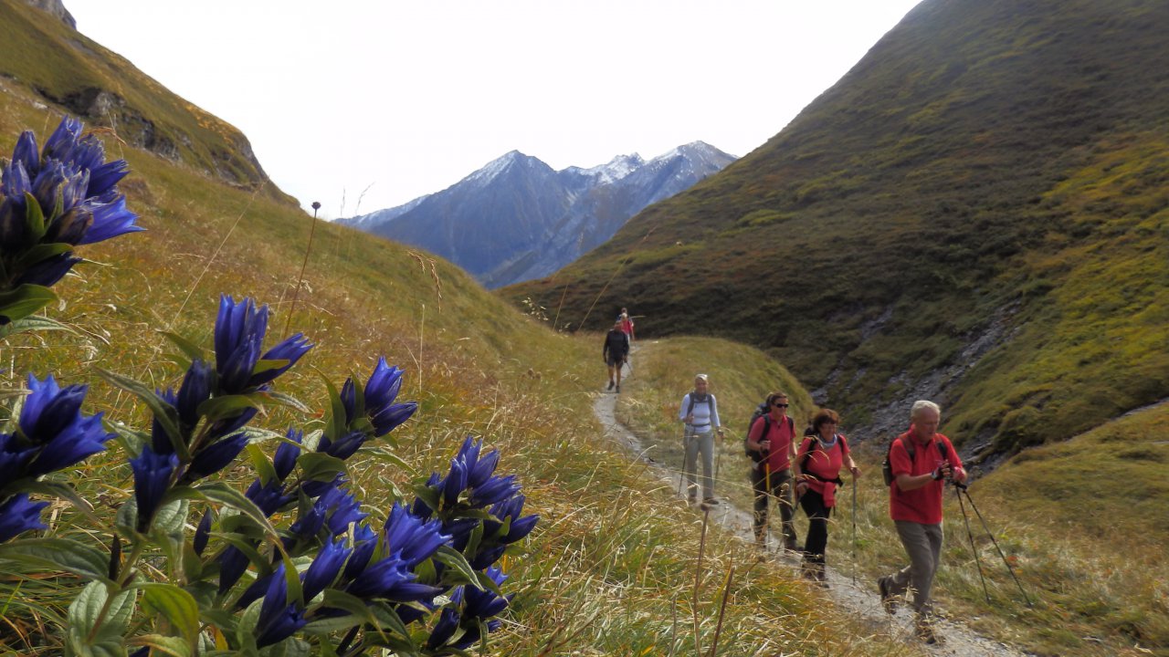 Dazu die prächtige Aussicht auf die herbstliche Kulisse in allen Farben und die schneebedeckten Bergspitzen im Hintergrund - einfach gewaltig-