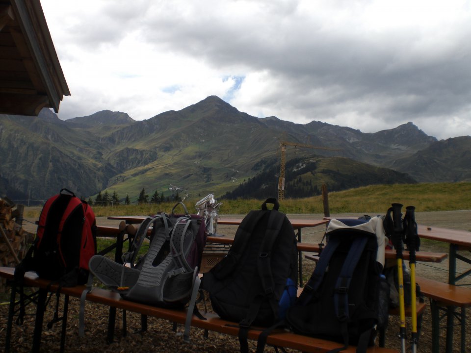 Schön aufgezeilt in Reih und Glied standen da unsere Rucksäcke und genossen die herrliche Aussicht...