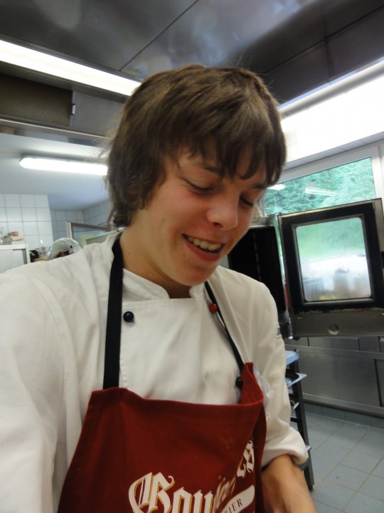 Heute hat Paulina einmal einen Tag Pause gemacht und mir stattdessen in der Küche geholfen: Wir haben Käsesahne, Sacher und eine Obstschnitte gebacken. Zum Mittagessen hat sie auch noch Pizzaböden belegt und als Dessert weisse Schokoladencookies gebacken..... Ja, ich habe heute wirklich viel Hilfe gehabt. Auch der Stefan (wie im Bild zu sehen) war sehr fleissig!!! Tja und jetzt haben wir gerade die letzten Desserts angerichtet und ich geniesse in kürze meinen frühen Feierabend. (So gemein wie ich bin lasse ich Martin jetzt noch alleine putzen, weil der Stefan ja schon weg ist... aber Martin hat eh morgen frei!!)