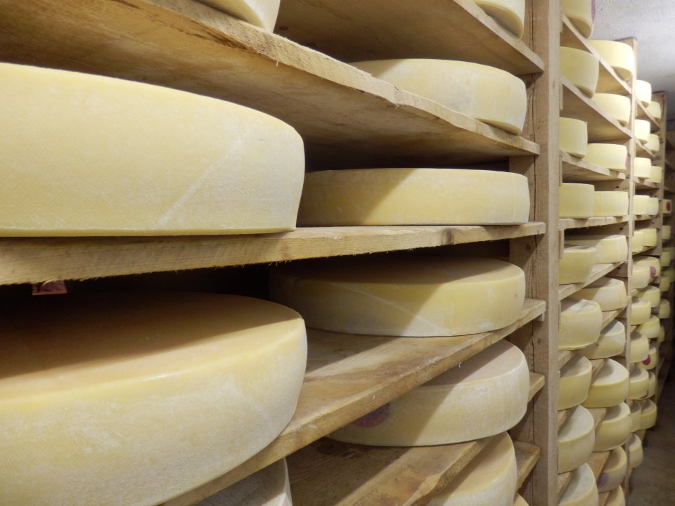 ein ganz klein wenig stolz in seinen Käsekeller! Wie ihr sehen könnts ist der Käsekeller schon randvoll! Ein solcher Käselaib wiegt bis zu