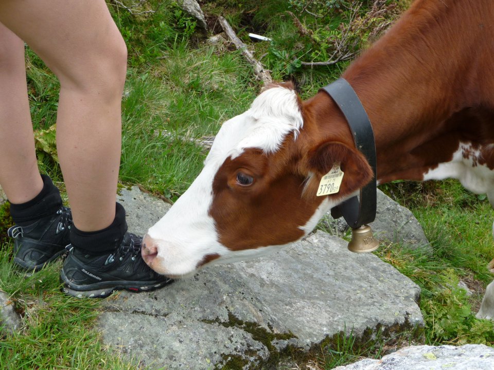 Eine Kuh liess es sich nehmen und schleckte unsere Wanderschuhe