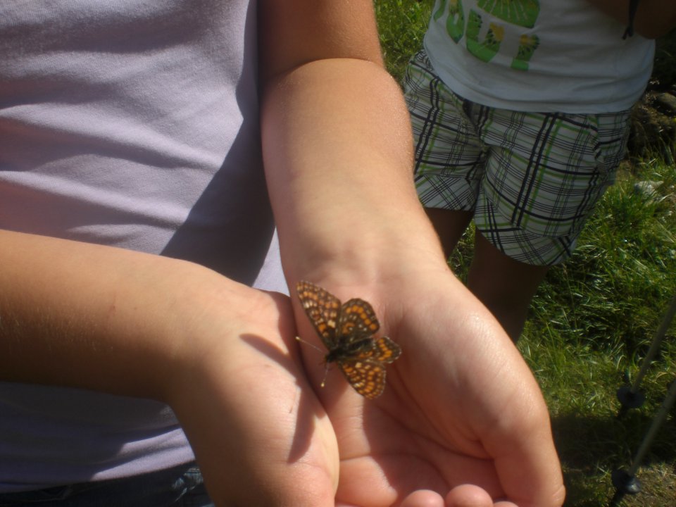 Auf einer meiner Lieblingstouren, der Wasserfalltour haben wir ausnahmsweise nur ein einziges Murmeltier gesichtet dafür aber hat sich dieser schöne Schmetterling auf Amelies Hand niedergelassen.
