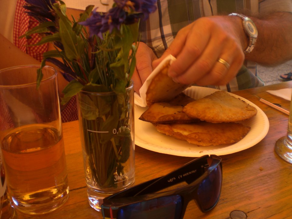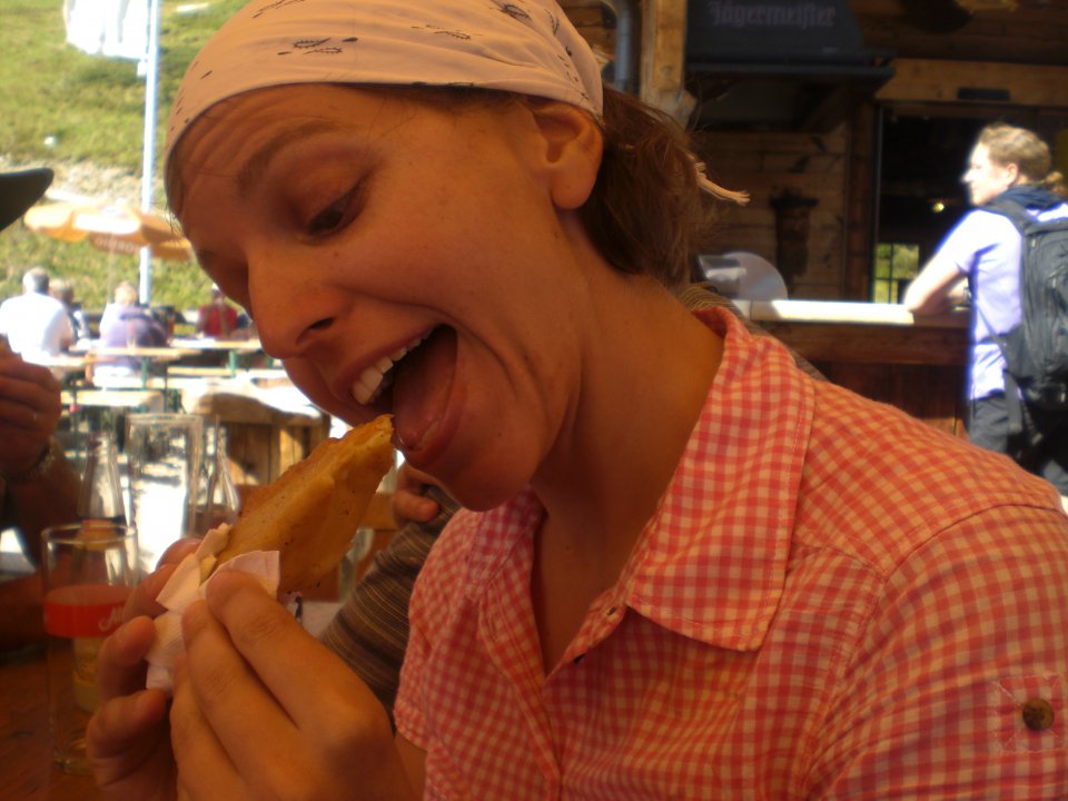 Nach getaner Arbeit :) - Wanderung zur Grüblspitze - machten wir einen Einkehrschwung auf der Eggalm: Zwei fesche Zillertaler spielten uns einen auf und ich liess mir die Zillertaler Krapfen so richtig schmecken.