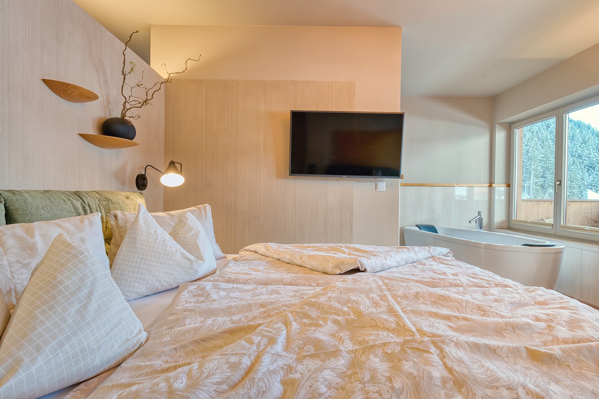 Unsere beliebten Baumsuiten erhalten ein umfassendes Refresh – und starten ab Dezember als Natursuiten in eine neue Ära des Wohlfühlens. Ein modernes Farbkonzept, neue Möbel, hochwertige Naturmaterialien und feine Details sorgen für ein frisches Wohngefühl mit alpinem Charme. Warme Töne, klare Linien und durchdachte Akzente schaffen eine Atmosphäre zum Ankommen und Wohlfühlen. Ob romantische Auszeit zu zweit oder entspannter Rückzugsort inmitten der Berge: Unsere neuen Natursuiten bieten noch mehr Komfort, noch mehr Stil – und noch mehr Naturgefühl.